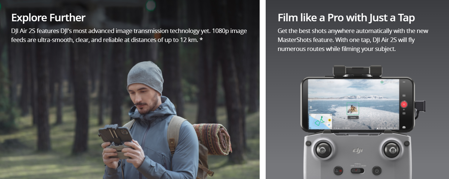 Drone + DJI Smart Controller: 1080p/30fps 12Mbps 130 ms