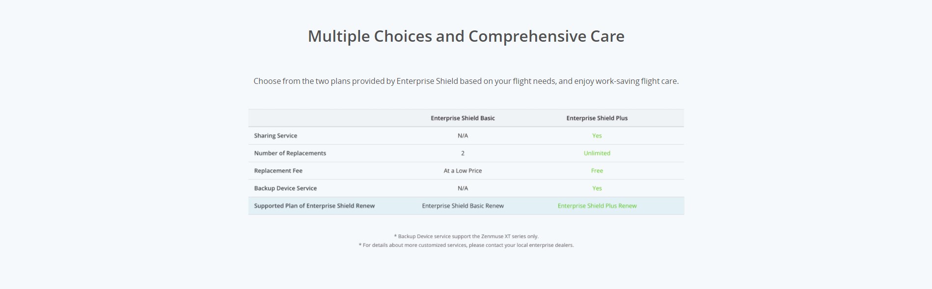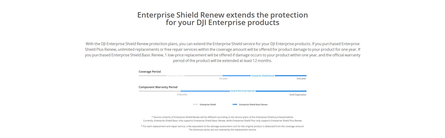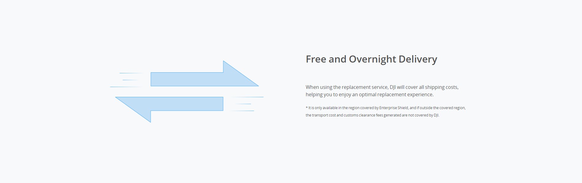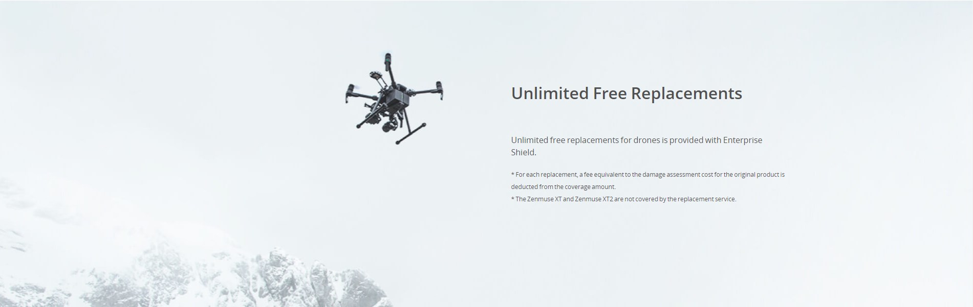 Enterprise Shield was specially created to provide comprehensive protection for your DJI Enterprise products. Offering coverage options with unlimited replacements or free repair services for accidental damage such as crashing, water damage, or signal interference. This efficient and total accident protection service provides greater peace of mind for your entire DJI fleet.