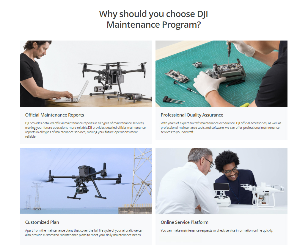 DJI Enterprise provides lifetime maintenance program to your aircraft, so you can fly safer as the aircraft is kept at top performance all the time.