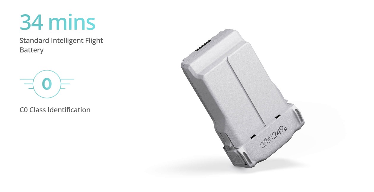 In Europe, Mini 4 Pro has C0 certification. With the standard Intelligent Flight Battery, you get up to 34 minutes of flight time, ensuring seamless creation without battery concerns.