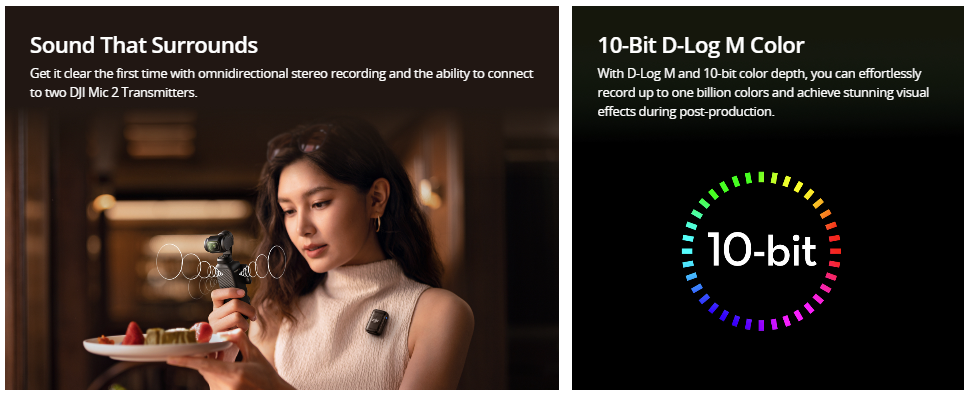 With the built-in Wi-Fi & Bluetooth module, Pocket 3 can directly connect to two DJI Mic 2 Transmitters, giving you ultra-clear recording for vlogs, interviews, livestreams, and more.