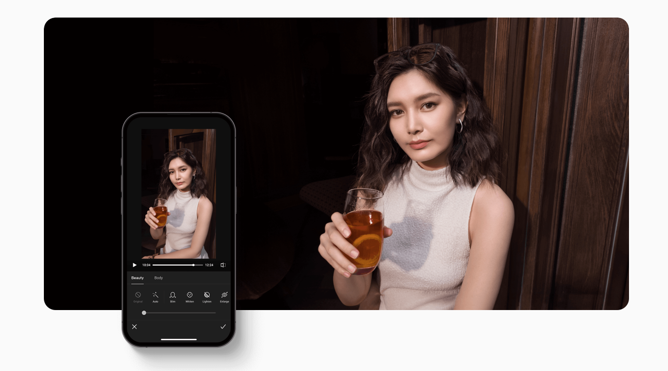 Glamour Effects 2.0 offers more personalized beauty options. Activate it on the rotatable touchscreen and download materials via the DJI Mimo app for automatic beautification. Find your angle with every shot.