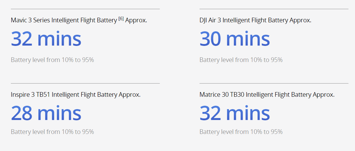 With the aid of separately-sold charging cables, you can fast charge select DJI drone batteries with the DJI Power SDC super-fast charge function, and be up in the air within approximately 30 mins. With three drone batteries and a DJI portable power station, you can enjoy an entire day of worry-free flight and creation.