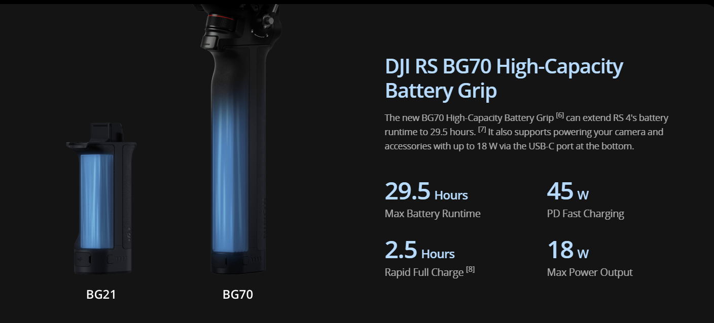 | Max Runtime: 12 hours (Measured with the gimbal balanced in a level and stationary state. When the gimbal is in motion, the operating time will be reduced.) | |
