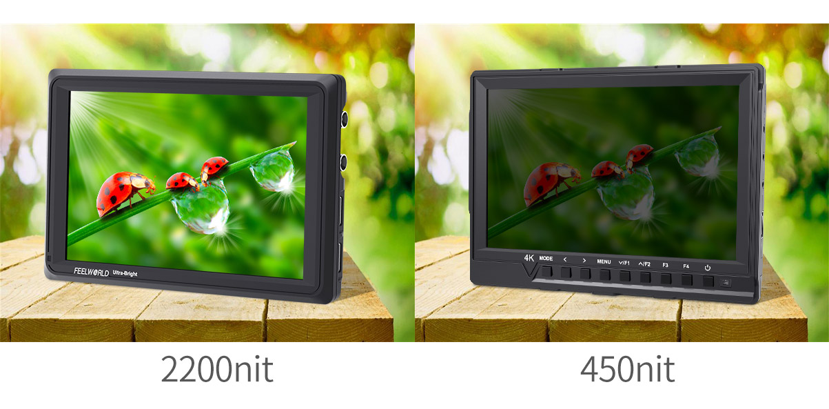 FEELWORLD FW279S ultra-high brightness monitor uses the "golden size" 7-inch panel. The FW279S monitor not only has the resolution and pixel density to make every shot look amazing, the high bright 2200nit screen at almost 5 times the brightness of conventional field monitors lets you shoot outdoors without reflections washing out your image. This makes it a great choice for gimbals, Steadicam and director's monitors, delivering a crisp image without the bulk and viewing angle restrictions of a sun hood.