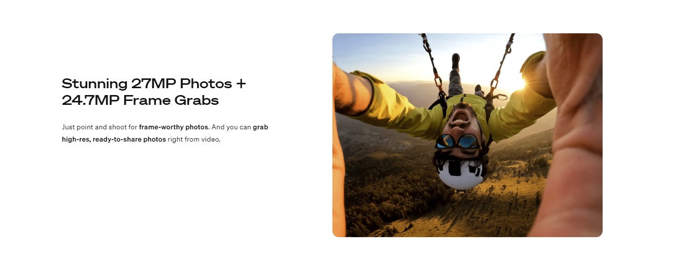 The large image sensor also lets you capture a wide 156° field of view in a full-frame 8:7 aspect ratio, in 5.3K and 4K.
