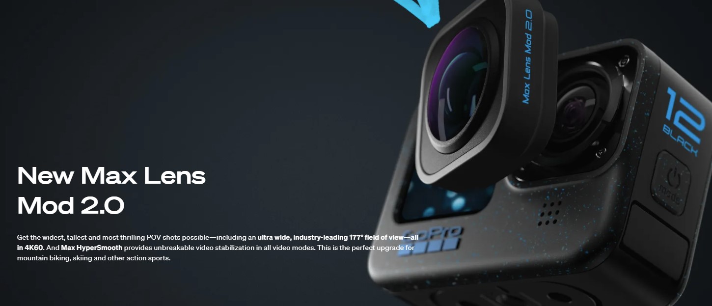New to Max Lens Mod 2.0, Max HyperView delivers a 177° field of view—that’s the widest view available in a GoPro, even compared to GoPro MAX shooting in single-lens mode—in stunning 4K60.