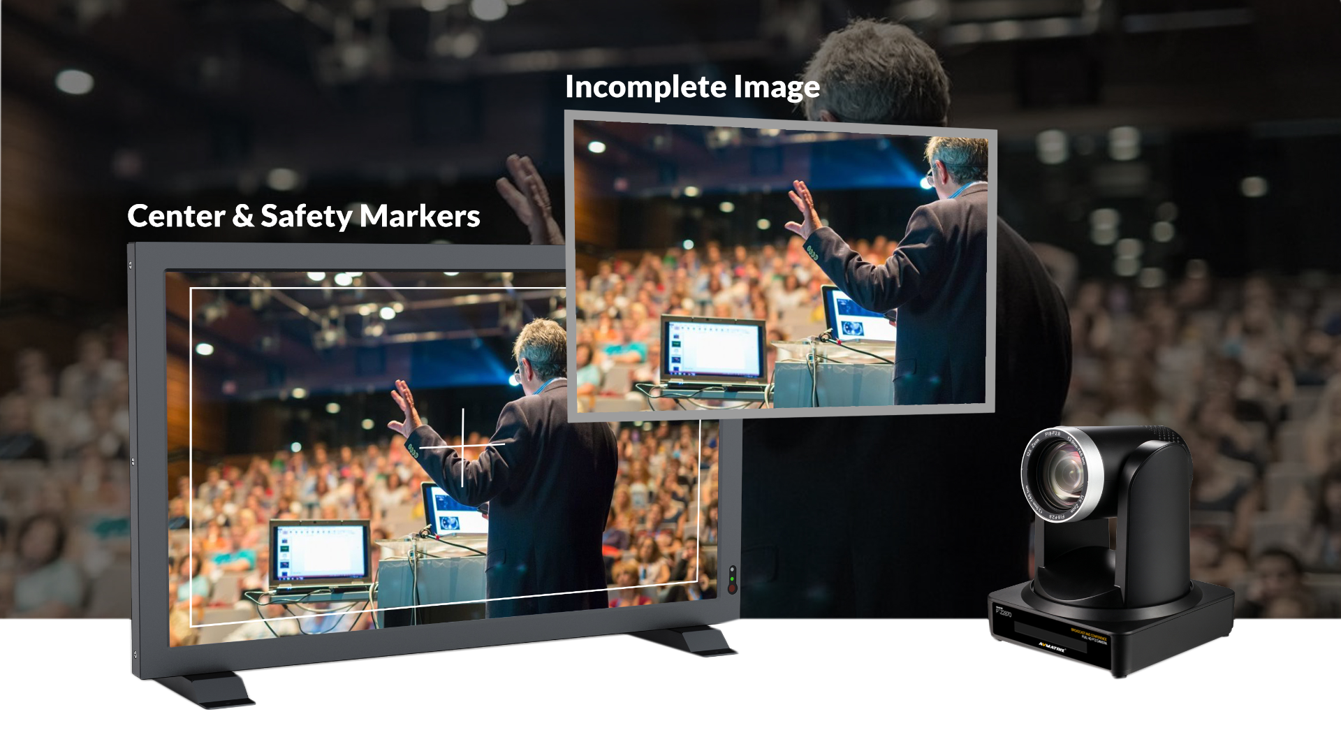 The image output from the camera to TV live is often slashed. This monitor comes with Center Markers and Safety Markers, allowing to adjust the best angle of cameras in real time to show the most important images in center of shot.
