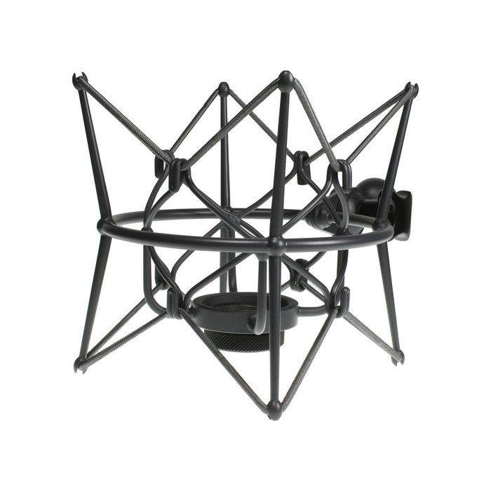 The black EA 2 Elastic Suspension from Neumann has a swivel mount with a 5/8"-27 female thread. It also features a thread adapter to connect to 1/2" and 3/8" stands.