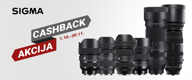 Sigma Cashback - kupite jedan od dolje navedenih objektiva te ostvarite cashback u iznosu od 753,45 kn (100 EUR) ili 1506,90 kn (200 EUR), ovisno o modelu objektiva. Akcija vrijedi za dolje navedene objektive kupljene u razdoblju od 1. listopada do 30. studenog 2022.