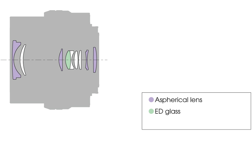 - One extra-low dispersion glass element is featured in the lens design to help reduce chromatic aberrations and color fringing for improved clarity and color neutrality.