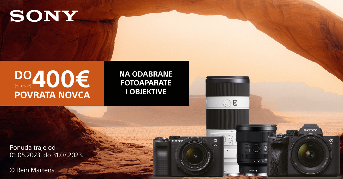 Ostvarite Cashback nakon kupnje odabranih Sony fotoaparata i objektiva.Iznosi Cashbacka kao i proizvodi uključeni u promociju su navedeni niže u tablici. Promotivna aktivnost vrijedi za sve kupovine ostvarene u periodu od 01.05.2023. do 31.07.2023. (uključujući i 31.07.2023). Zahtjev je potrebno podnijeti nakon trideset (30) dana od datuma kupnje, do 30.09.2023. (do 23:59).