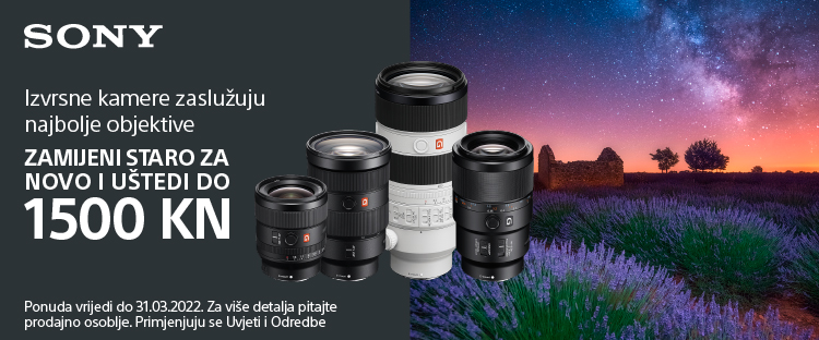Donesite bilo koji stari objektiv te ostvarite popust prilikom kupnje novog Sony objektiva! Akcija vrijedi do 31.3. 2022. Niže su navedeni objektivi te iznosi popusta obuhvaćeni Sony Trade In promocijom: