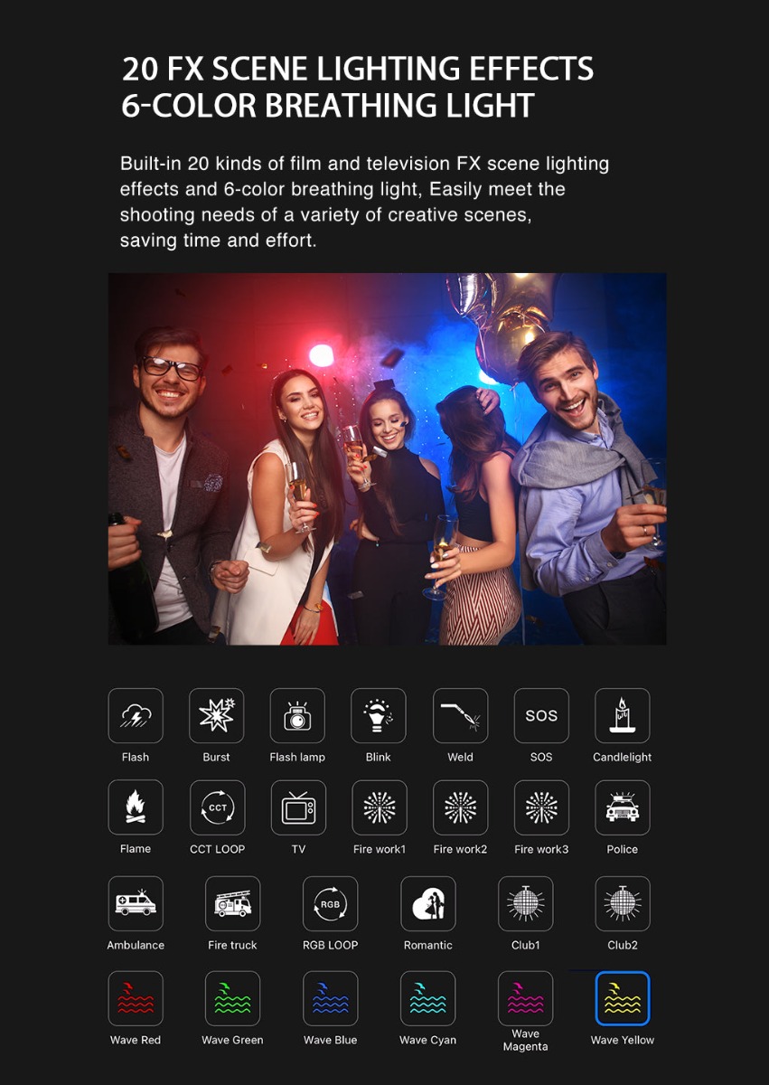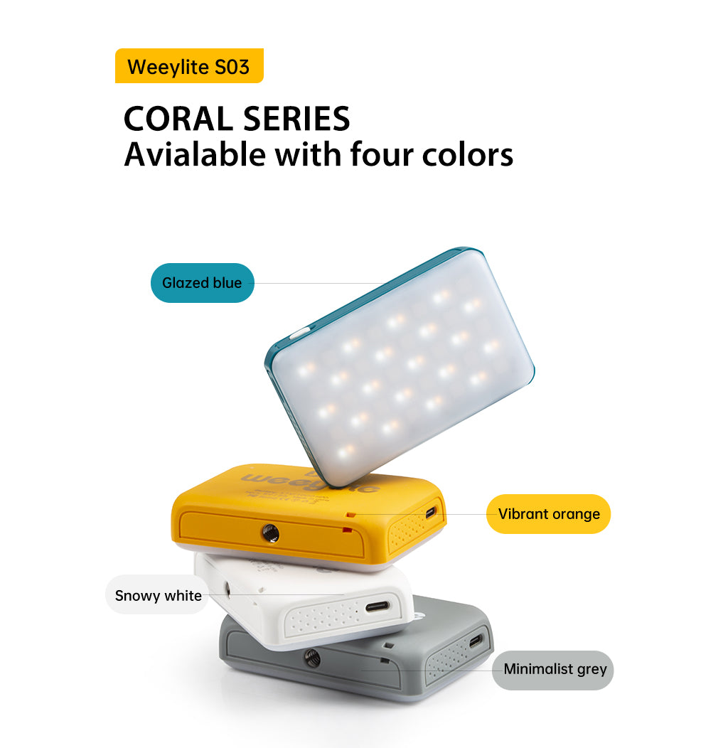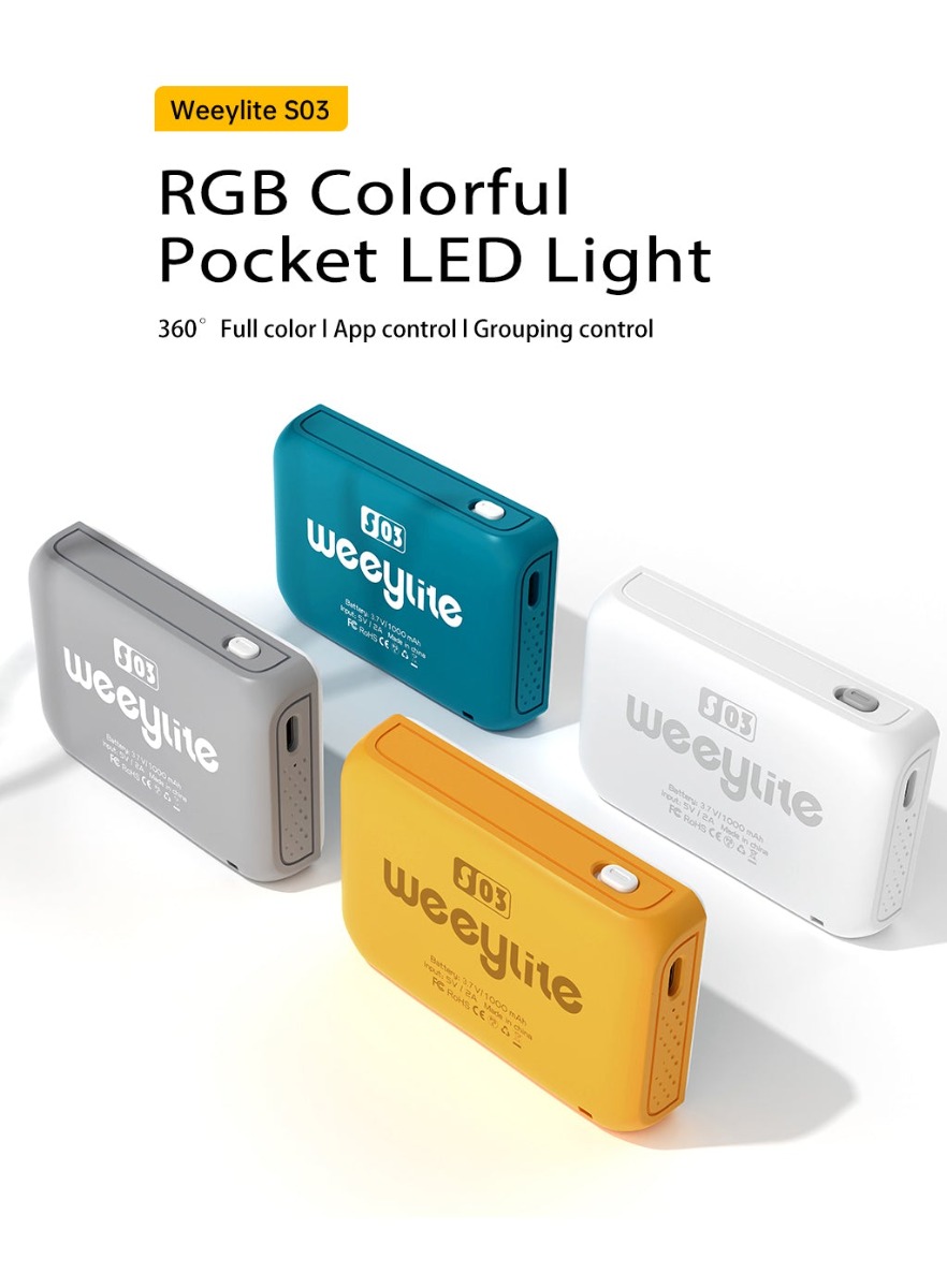 Weeylite S03 fill light is a portable pocket fill light.There are multiple high color (positive white+warm white) and high-quality RGB light beads